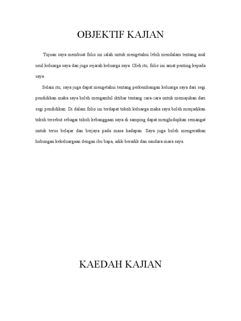 Objektif kajian (contoh) dalam melaksanakan kerja kursus sejarah ini, terdapat beberapa objektif yang ingin saya capai. Objektif kajian masyarakat di kawasan tempat tinggal anda.berikut dikongsikan contoh objektif kajian kerja kursus sejarah pt3 2018 yang bertajuk :masyarakat di kawasan tempat tinggal anda.moga ianya boleh dijadikan panduan berguna buat pelajar tingkatan 3 dalam menyiapkan isi kandungan tugasan kerja kursus/ folio sejarah tahun ini. Dalam penulisan kali ini, cikgu akan menerangkan panduan menyiapkan kerja kursus/kajian kes/folio/buku skrap kepada awak semua. Objektif kajian adalah sesuatu input yang mahu diperolehi mengikut tugasan kajian yang. Contoh folio geografi obtenez livre.